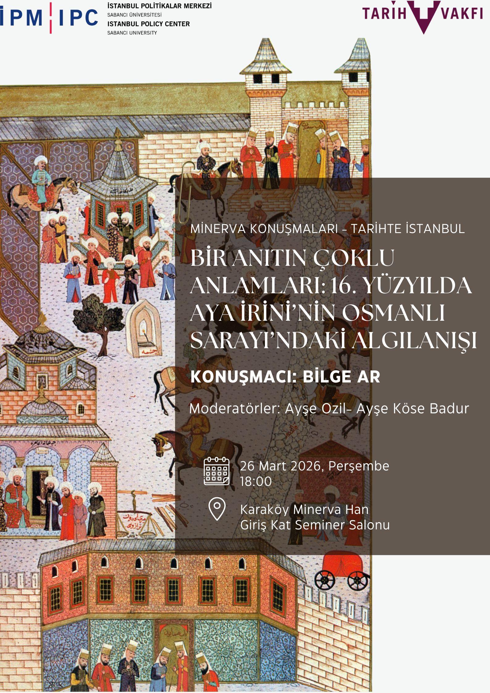 Tarih Vakfı ve İPM iş birliğiyle düzenlenen ''Minerva Konuşmaları: Tarihte İstanbul'' serisinde Bilge Ar'ın katılımıyla ve Ayşe Köse Badur ve Ayşe Ozil'in moderatörlüğünde ''Bir Anıtın Çoklu Anlamları: 16.Yüzyılda Aya İrini'nin Osmanlı Sarayı'ndaki Algılanışı'' başlıklı bir konuşma gerçekleşecektir. Tarihte İstanbul serisinde, Osmanlı İmparatorluğu ve Türkiye Cumhuriyeti tarihinde, farklı yüzyılları ve dönemleri kapsayacak biçimde İstanbul’un siyasi, ekonomik, toplumsal ve kentsel varlığı ele alınıyor.