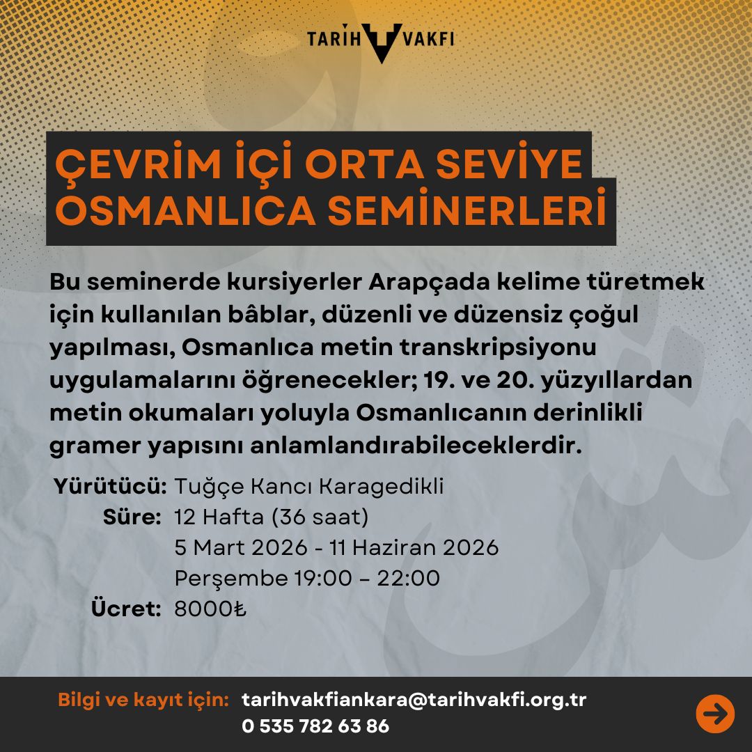 Kayıt Linki: https://fonzip.com/tarihvakfi/etkinlikler/cevrim-ici-orta-seviye-osmanlica-seminerleri