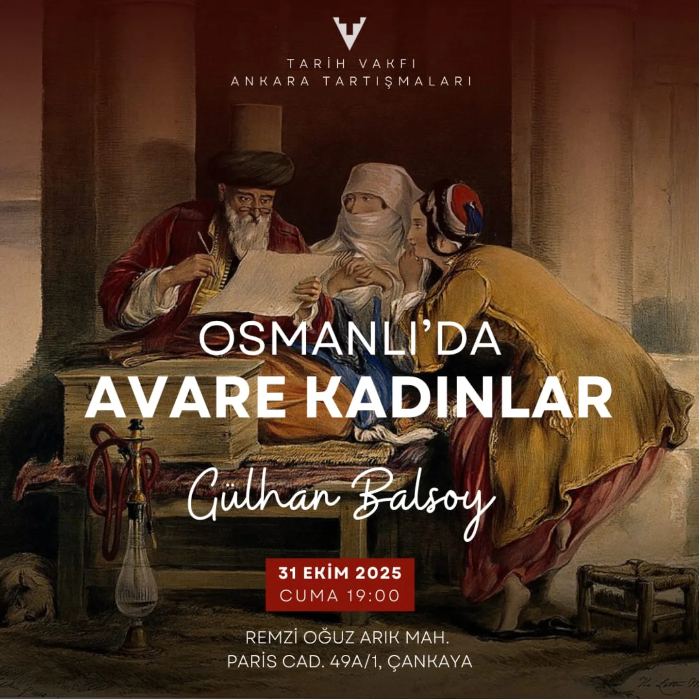 31 Ekim Cuma günü 19.00’da Gülhan Balsoy’un “Osmanlı’da Avare Kadınlar” başlıklı konuşmasına davetlisiniz.