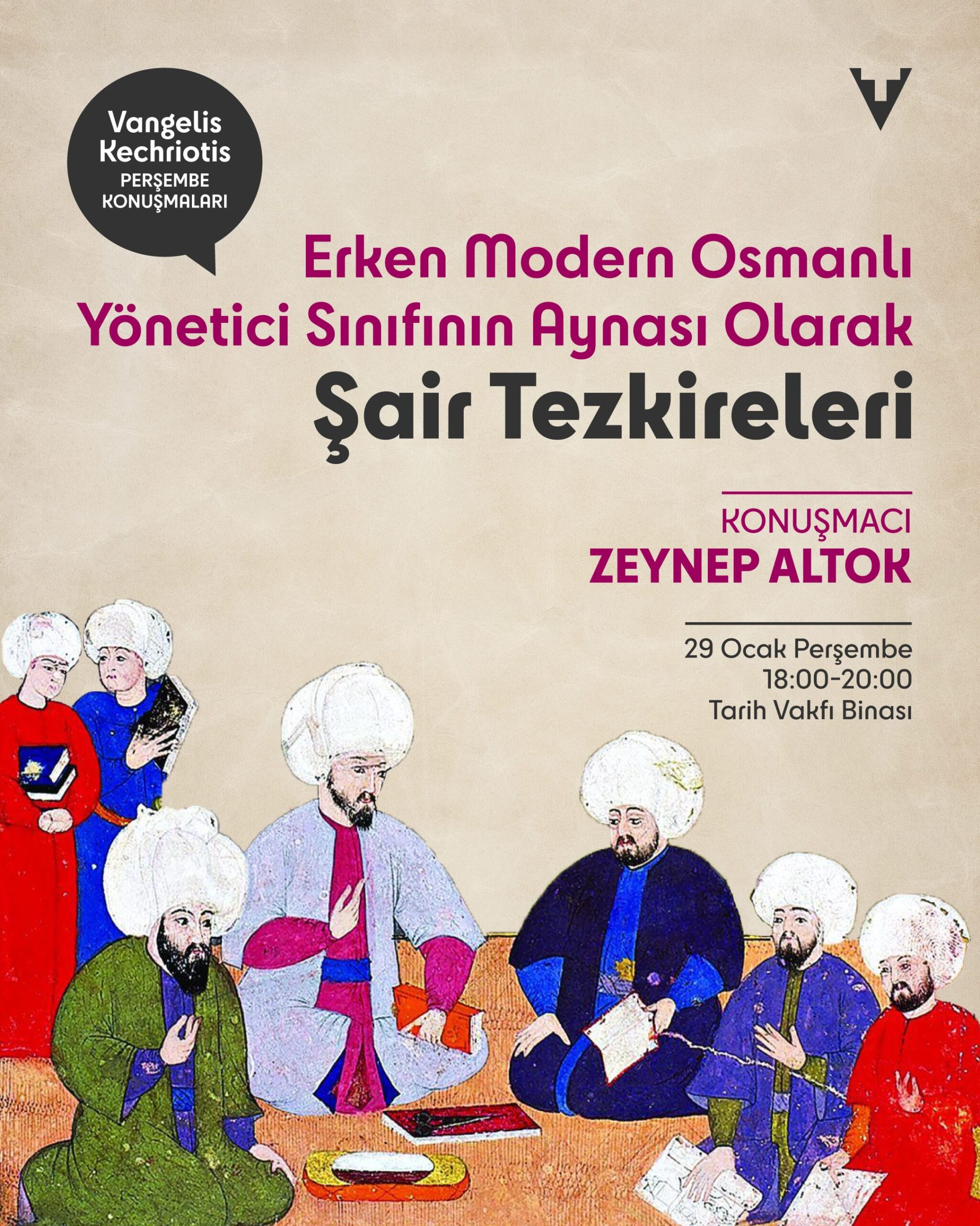 Gülhan Balsoy’un koordinatörlüğünde hazırlanan Vangelis Kechriotis Perşembe Konuşmaları serimizin beşinci konuşmacısı “Erken Modern Osmanlı Yönetici Sınıfının Aynası olarak Şair Tezkireleri” başlığıyla Zeynep Altok olacak.