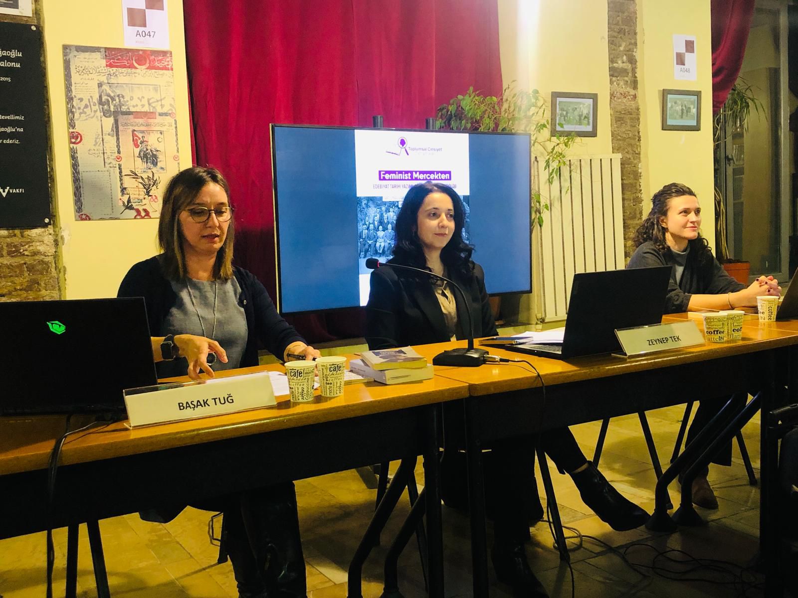 19 Aralık Cuma akşamı Tarih Vakfı’nda Toplumsal Cinsiyet Tartışmaları’nın ilki gerçekleşti. Başak Tuğ moderatörlüğündeki sohbette Bilge Ulusman ve Zeynep Tek’ “Feminist Mercekten Edebiyat Tarihi Yazımı, Biyografi ve Metodoloji” konusunu masaya yatırdılar.