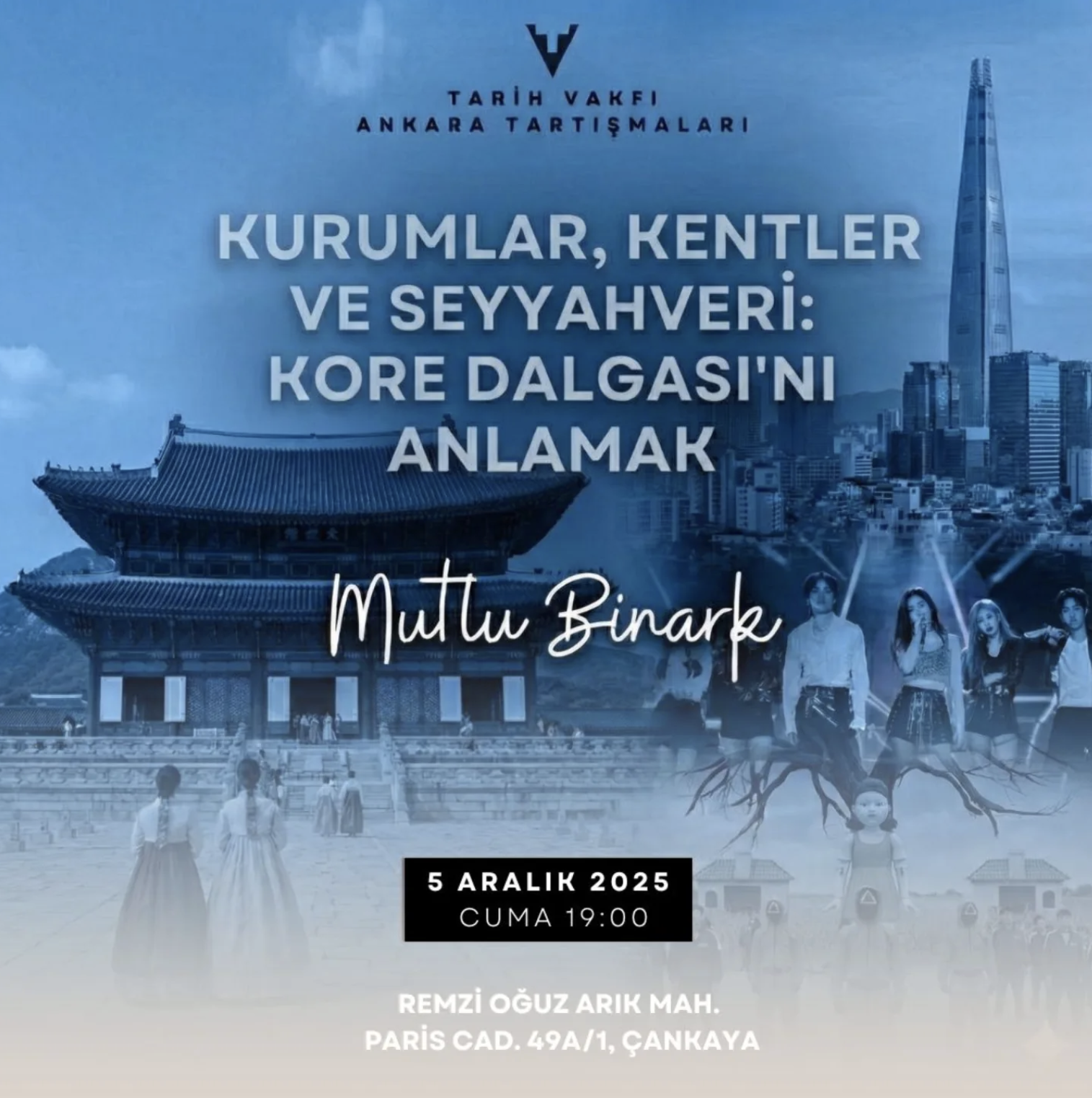 5 Aralık Cuma günü Mutlu Binark'ın “Kurumlar, Kentler ve Seyyahveri: Kore Dalgası'nı Anlamak" başlıklı konuşmasını dinledik.