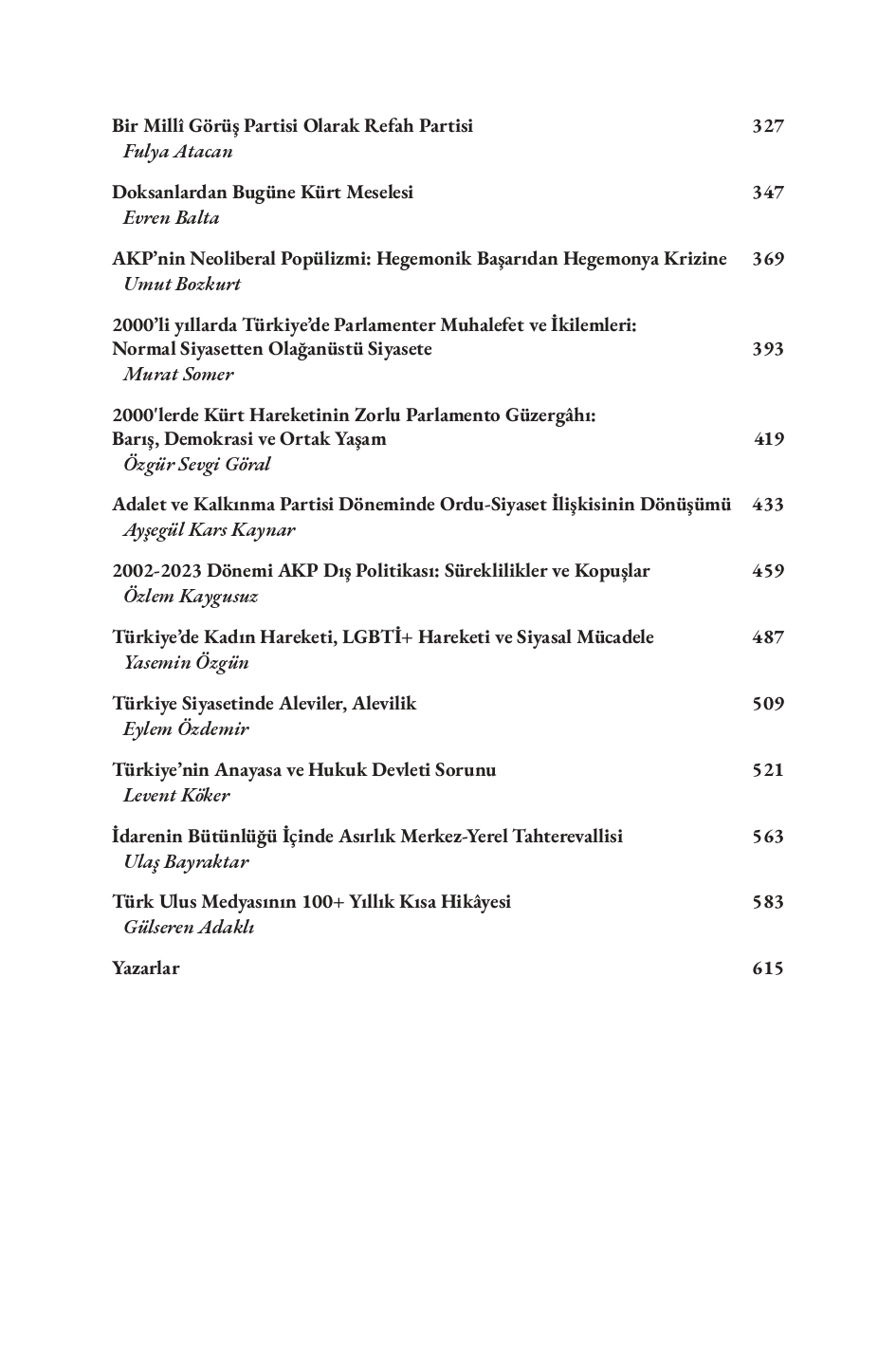 2000’li yıllarla birlikte farklı teorik yaklaşımlardan eleştirel çalışmalar, Türkiye siyasetinin ve devletin hem tarih boyunca hem de günümüzde sosyo-politik güç ilişkilerinin bir alanı olduğunu sınıf, toplumsal cinsiyet, etnisite, dini kimlik vb. eksenler üzerinden ortaya koydu. Aynı zamanda, dış politika ve iç politikanın organik ilişkisini, Türkiye’nin küresel kapitalizmin iktisadi, siyasi, askeri yapılarıyla bağlarını analiz etti. İşçiler, köylüler, kadınlar, LGBTİ+ bireyler, gençler, Kürtler, Aleviler gibi baskı altındaki toplulukların siyasetin özneleri olduğunu sergileyen bu yeni kuşak araştırmalar, liberal paradigmanın ötesinde bir siyaset ve demokrasi ufkunu da ortaya koyuyor.