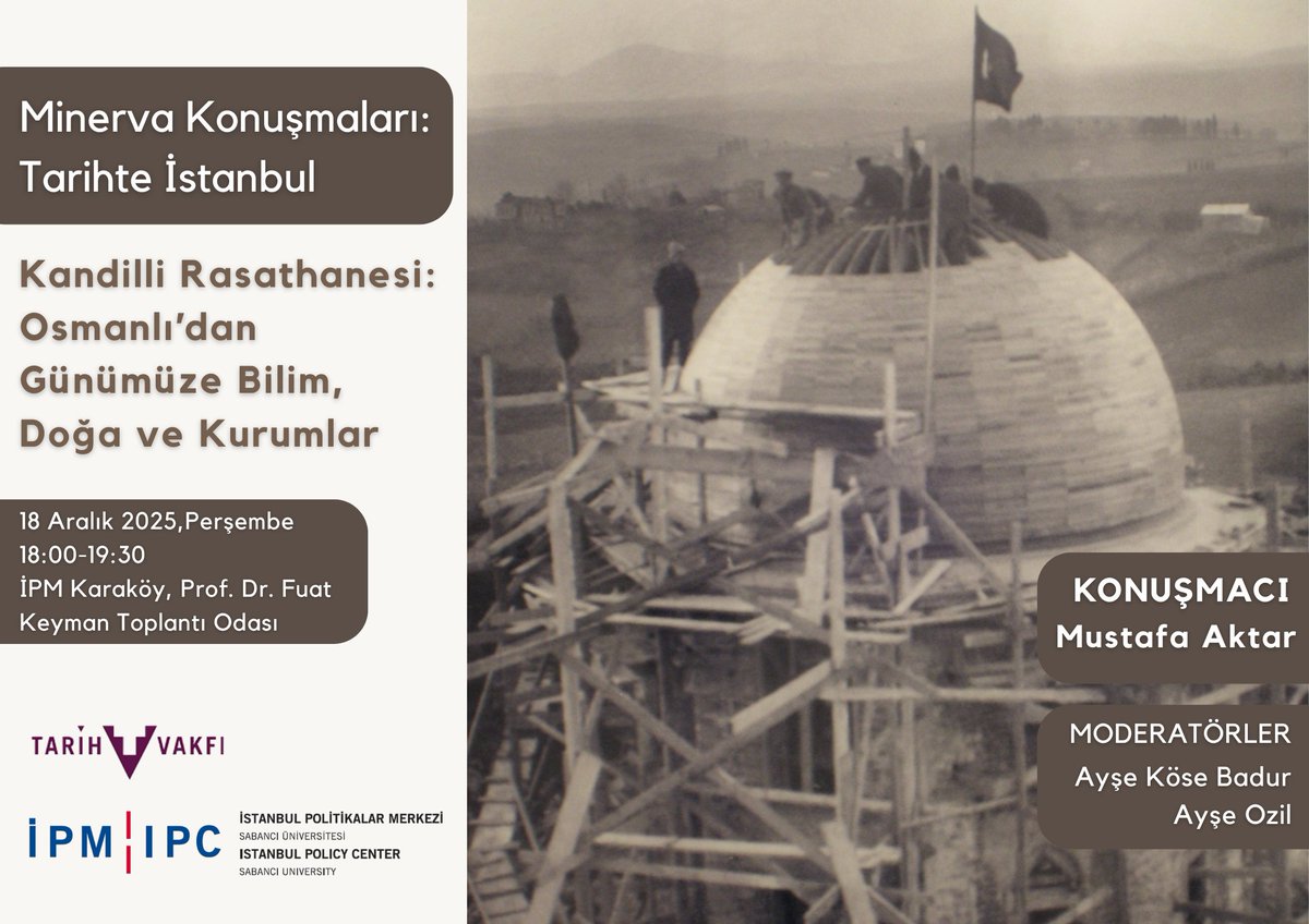 İPM ve Tarih Vakfı iş birliğiyle düzenlenen "Minerva Konuşmaları: Tarihte İstanbul" serisinde Mustafa Aktar'ın katılımıyla ve Ayşe Köse Badur ve Ayşe Ozil'in moderatörlüğünde "Kandilli Rasathanesi: Osmanlı’dan Günümüze Bilim, Doğa ve Kurumlar" başlıklı konuşma 18 Aralık'ta İPM Karaköy'de gerçekleşti.